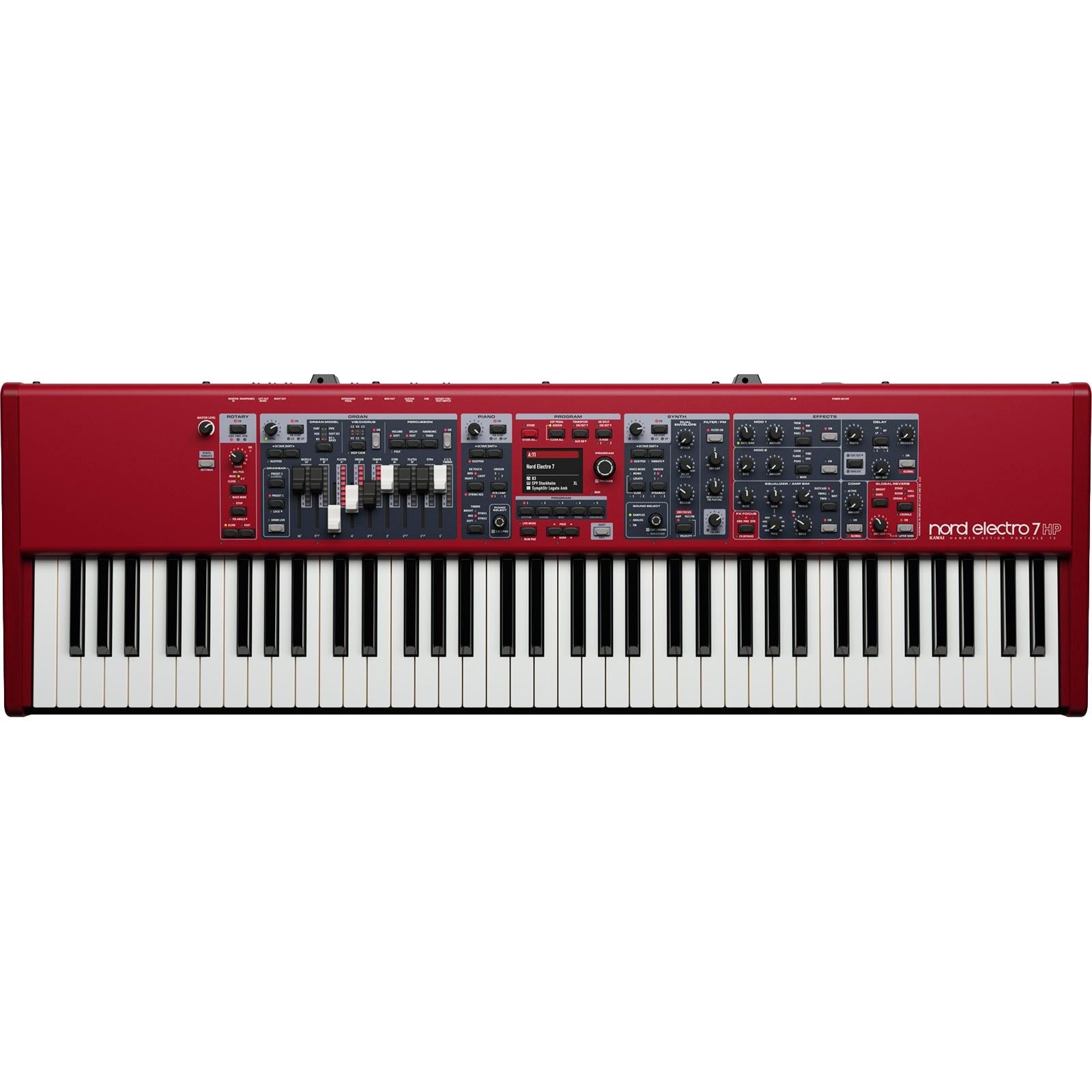 Nord Electro 7 HP løfter Electro-serien til et nyt niveau med en helt ny Synth Section, dedikerede effekter pr. sektion og et forbedret paneldesign med stort farvedisplay. Instrumentet kombinerer Nord’s nyeste klaverfunktioner med den anerkendte orgel- og rotary-motor fra Nord Organ 3 og leverer ekstrem alsidighed i et let, turnéklart format.
