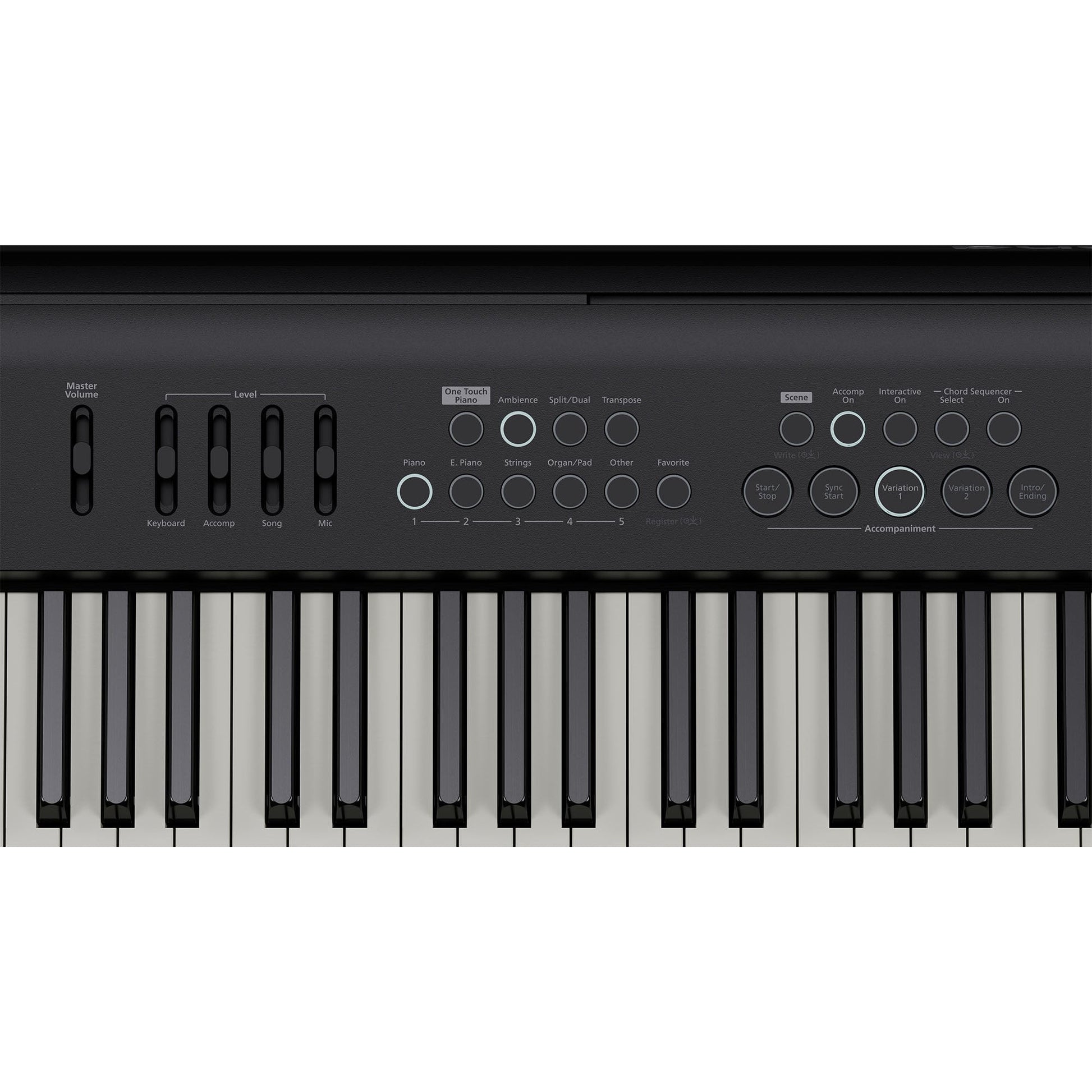 Although the FP-E50 is loaded with advanced features, getting around the instrument is frustrating. The top-level display shows sound, tempo and other important information, and the clean panel layout provides direct access to sound selection, preferred notes, keyboard transposition and more. Many buttons have long-press functions, so you can save settings or adjust deeper parameters without diving into the menu. And with Scenes, you can instantly recall complete setups for the entire keyboard using a few actions.