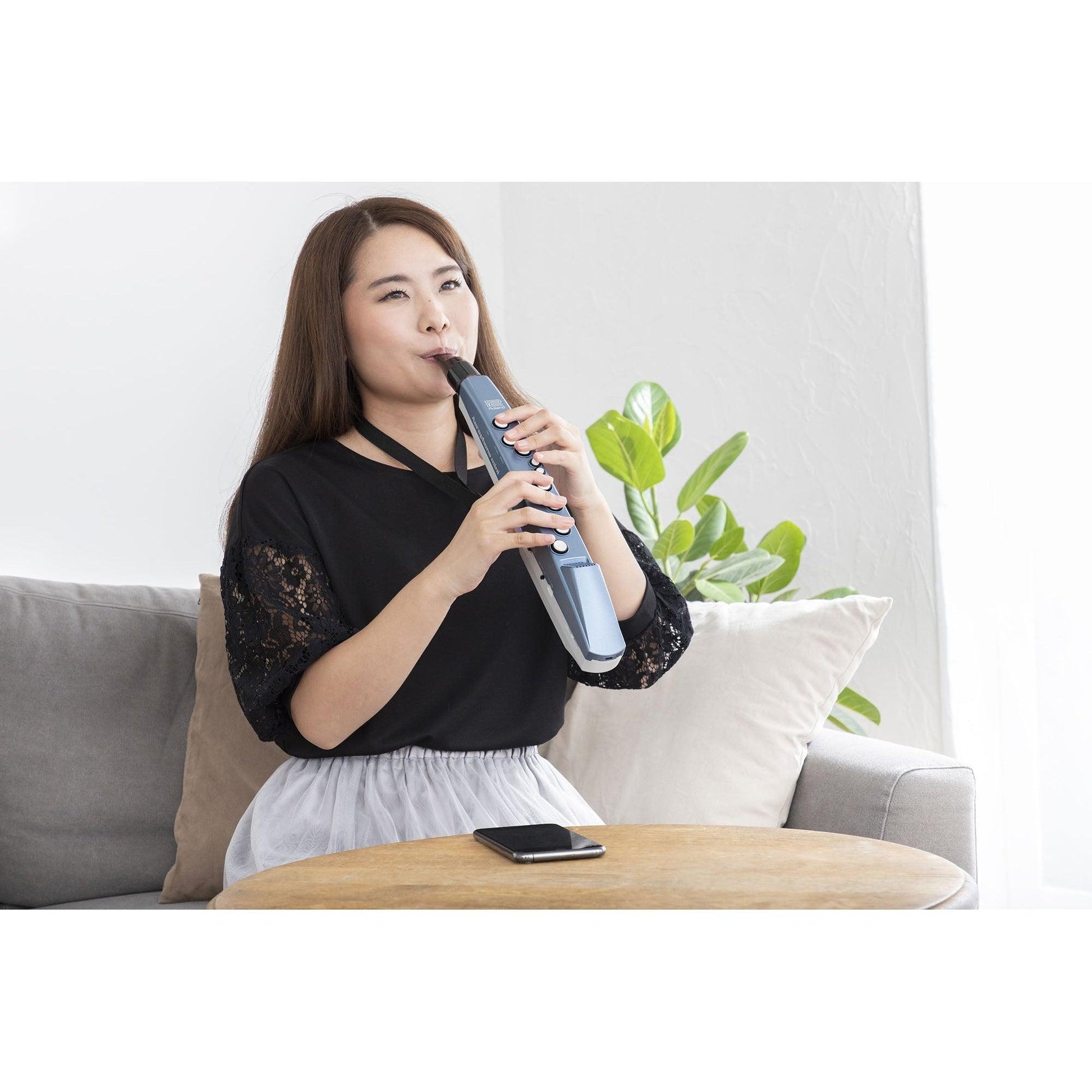 For at få en god pitch og tone kræver blæseinstrumenter en fokuseret åndedrætskontrol, der kan tage lang tid at mestre. Men Aerophone mini lyder godt fra starten, takket være den digital sound engine o udtryksfulde åndedrætssensor. Du skal blot lære den simple fingersætning, blæse ind i mundstykket og du er flyvende.