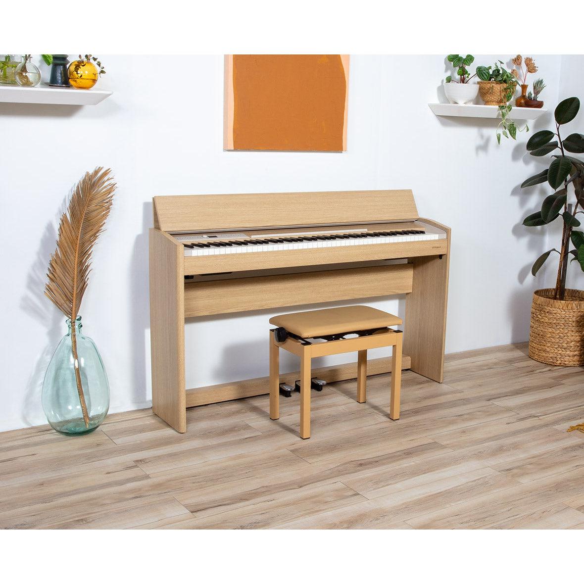Rolands F701 er et digitalpiano, bygget til den moderne livsstil. Med dens lækre pladsbesparende design, passer det perfekt ind i mindre lejligheder eller på teenage-værelset. Klaveret er fyldt med alt den nyeste teknologi fra de mest innovative udviklere af digitalpianoer. Førstehåndsindtrykket af instrumentet er den autentiske og udtryksfulde klaverlyd, der faktisk er bemærkelsesværdig for et digitalpiano i den prisklasse. Det indbyggede stereo højttalersystem leverer en fyldig og varm lyd, mens det unikke "Headphones Ambience"-system gør, at du kan fordybe dig i instrumentets toner helt uden at blive forstyrret. F701 har mange funktioner, der kan være med til at udvikle dit spil og din musikalske kreativitet, såsom den indbyggede optager, bluetooth tilslutning så du kan benytte apps som Roland Piano Everyday, der viser nodebilledet af det musikstykke du vil spille og en USB-port så du kan tilslutte en computer.