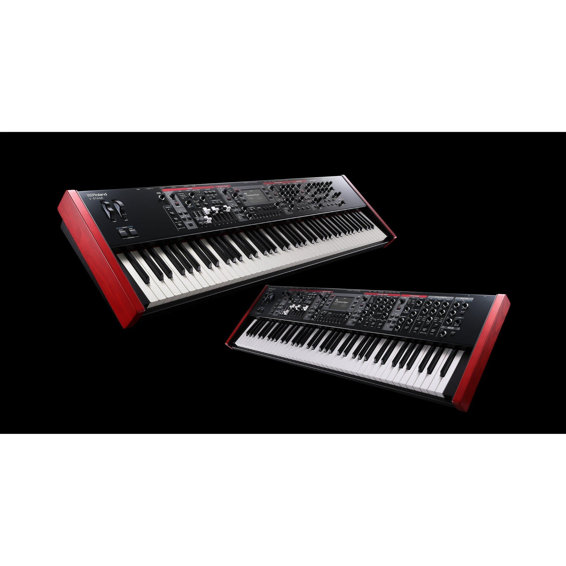 V-STAGE-modellerne har suverænt spilbare Roland-keyboards, der forbinder dig fuldt ud med hvert instruments førsteklasses lyde.Dyk ned i en autentisk akustisk klaveroplevelse med V-STAGE 88 og dets 88-tangenters vægtede klaviatur med hammermekanik, escapement og Ivory Feel-tangenter.Eller vælg V-STAGE 76 og nyudviklede, halvvægtede tangenter i "waterfall" stil med 76 tangenter for en traditionel orgelfornemmelse.
